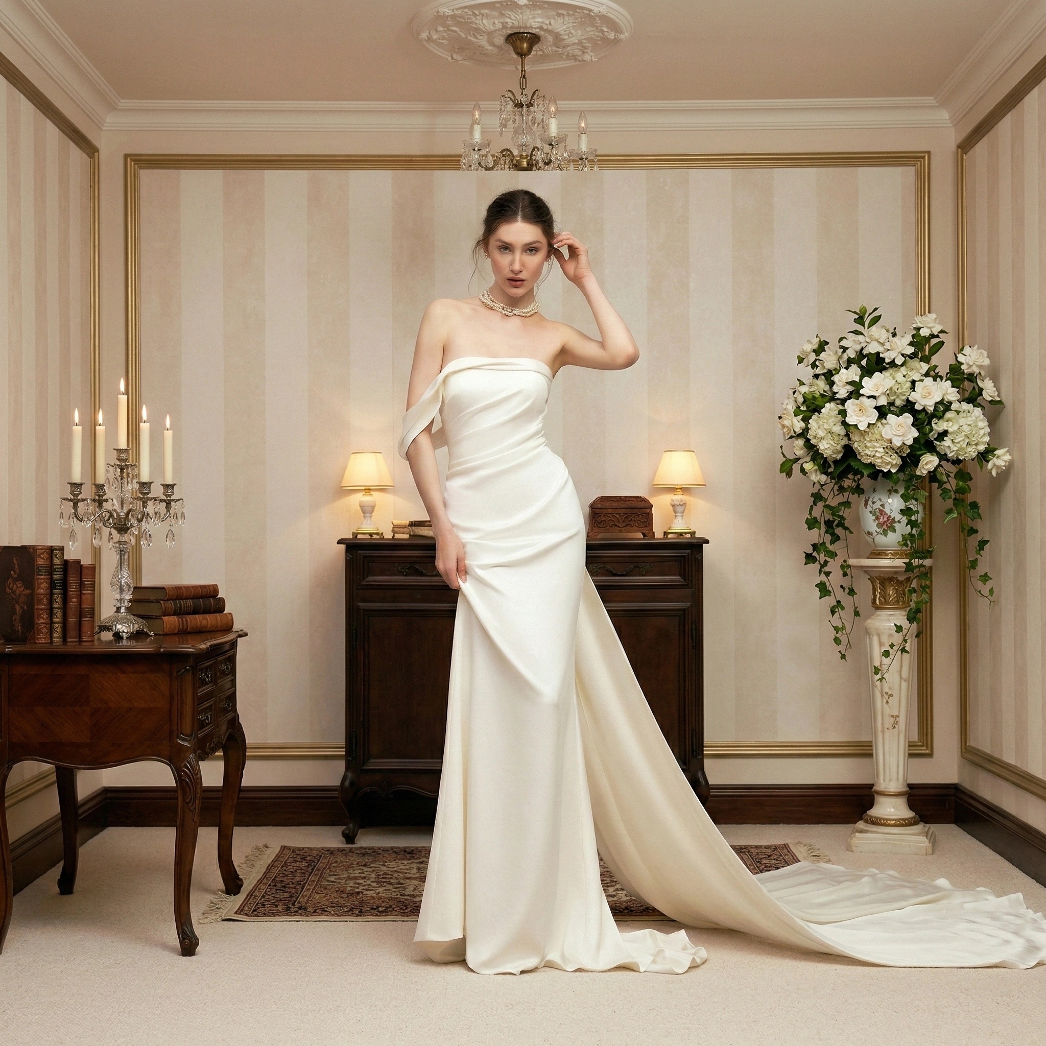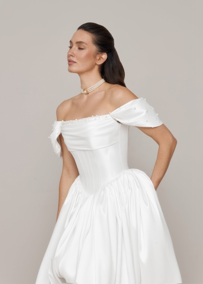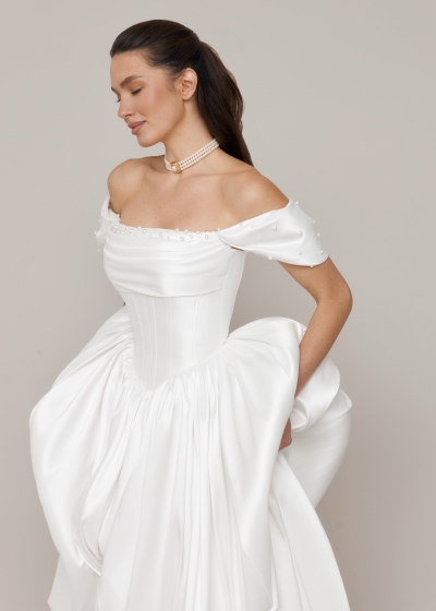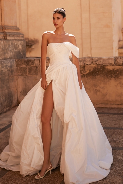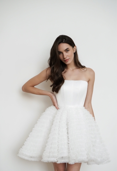 Modern minimalist wedding dresses are based on a minimalist design philosophy, emphasizing smooth lines and exquisite tailoring to showcase the bride's elegance and independence. They abandon elaborate embellishments, using lightweight fabrics such as silk and chiffon to create a fresh and comfortable feel. The simple silhouette and clear structure give the dress a modern feel without sacrificing the solemnity and beauty of a wedding. Suitable for brides who prefer a simple and fashionable wedding style, it perfectly embodies the design philosophy of "less is more."