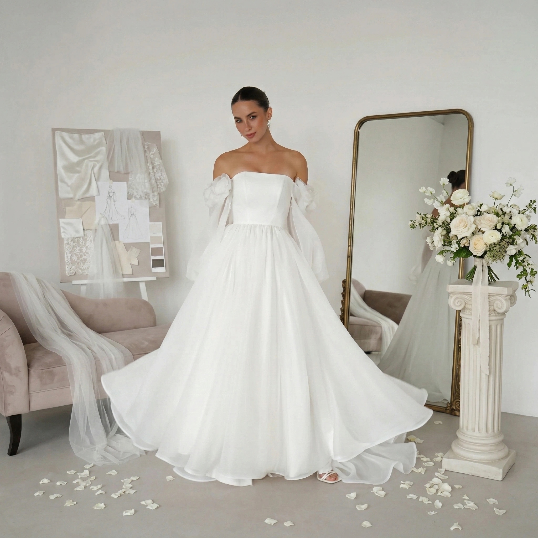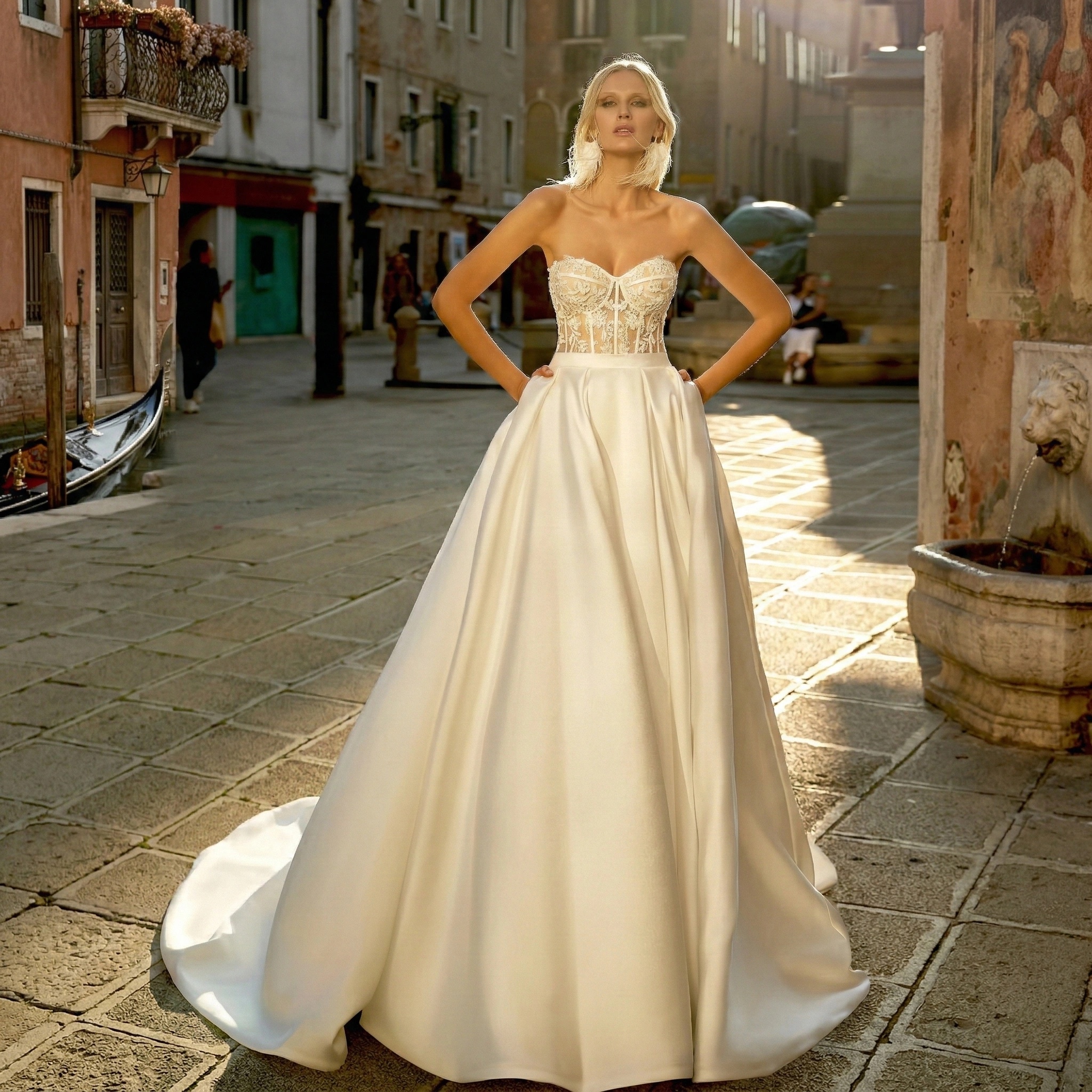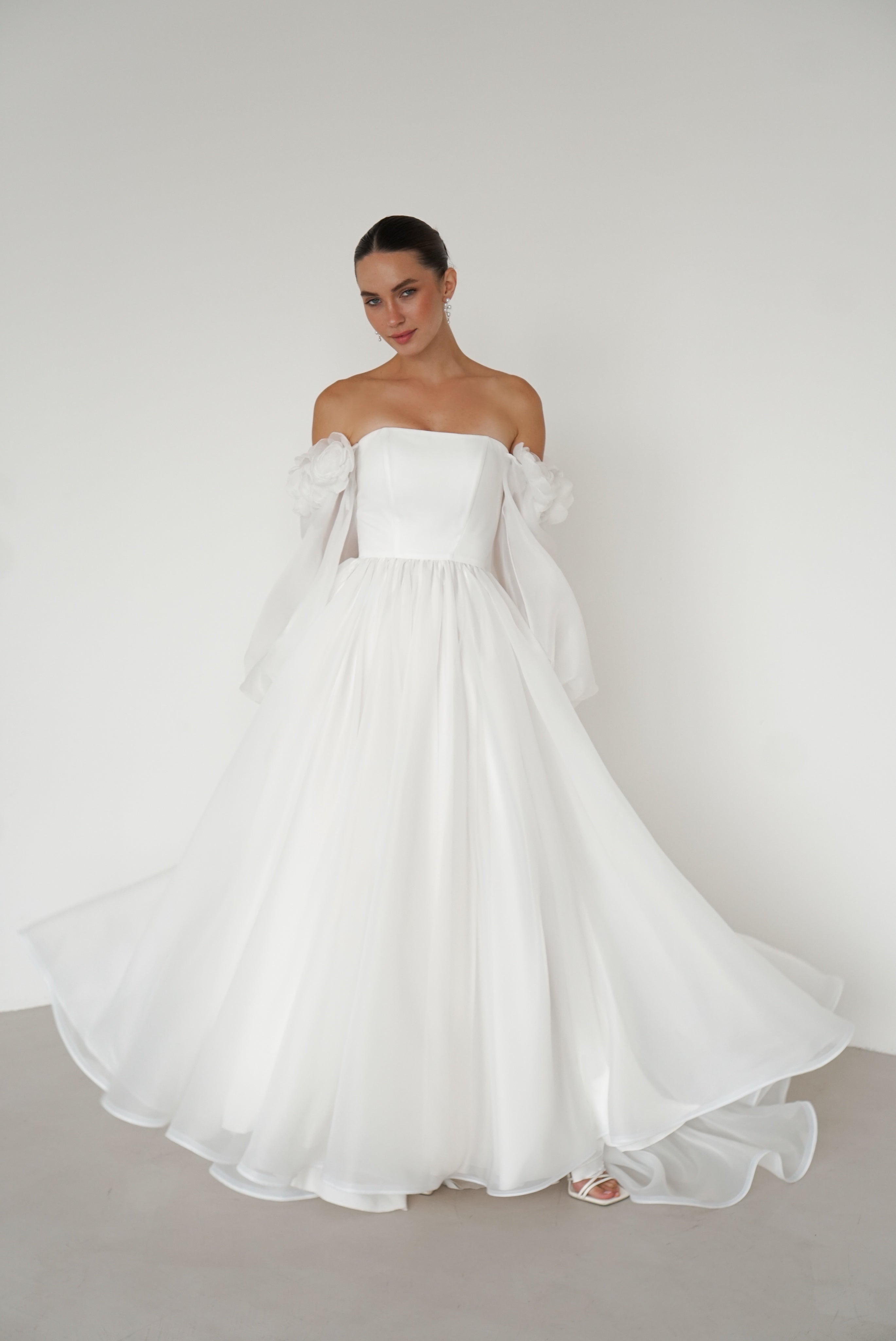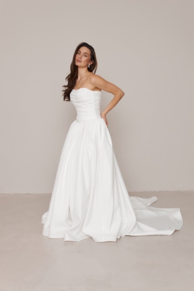 Simple yet sophisticated, the lightweight wedding dress brings unparalleled elegance.