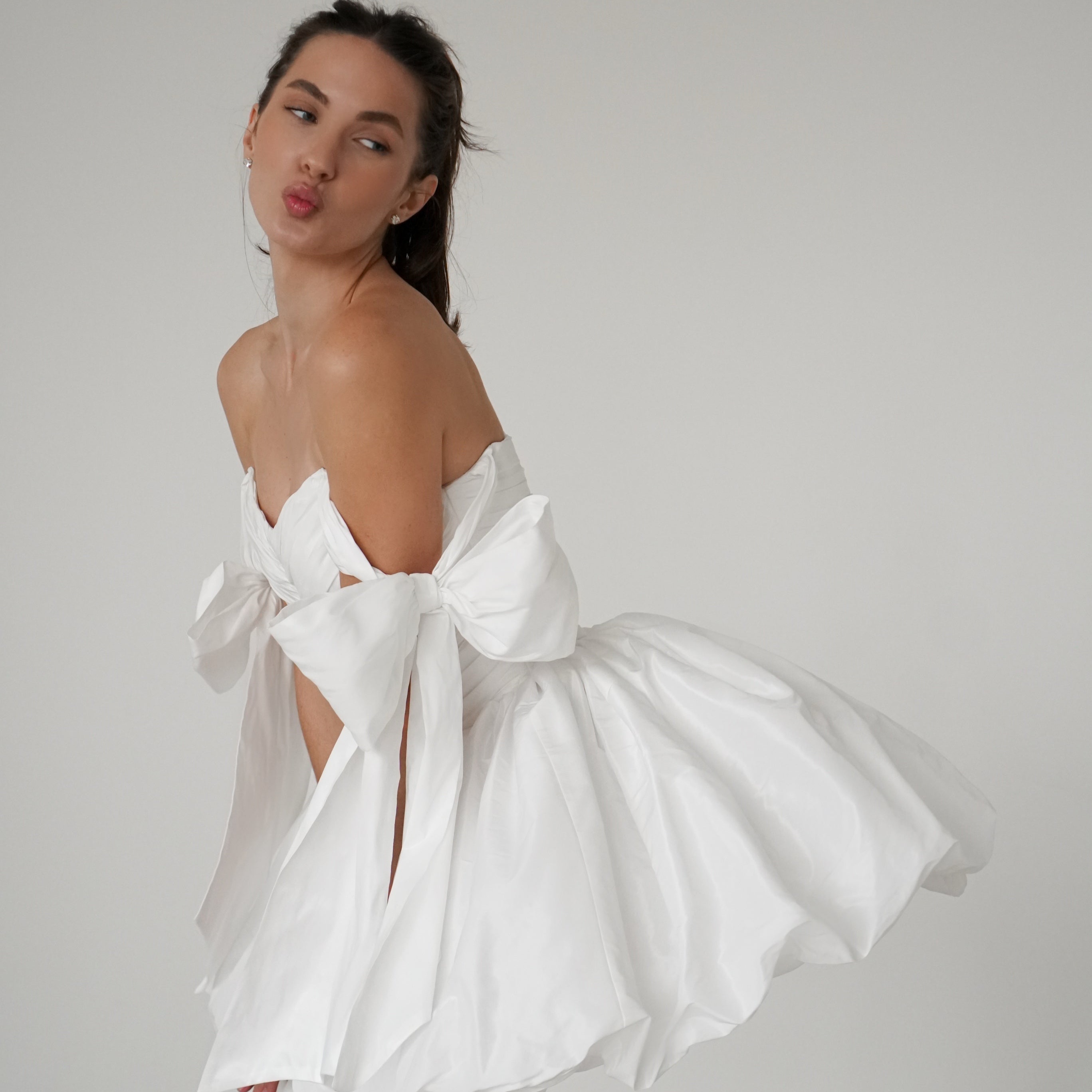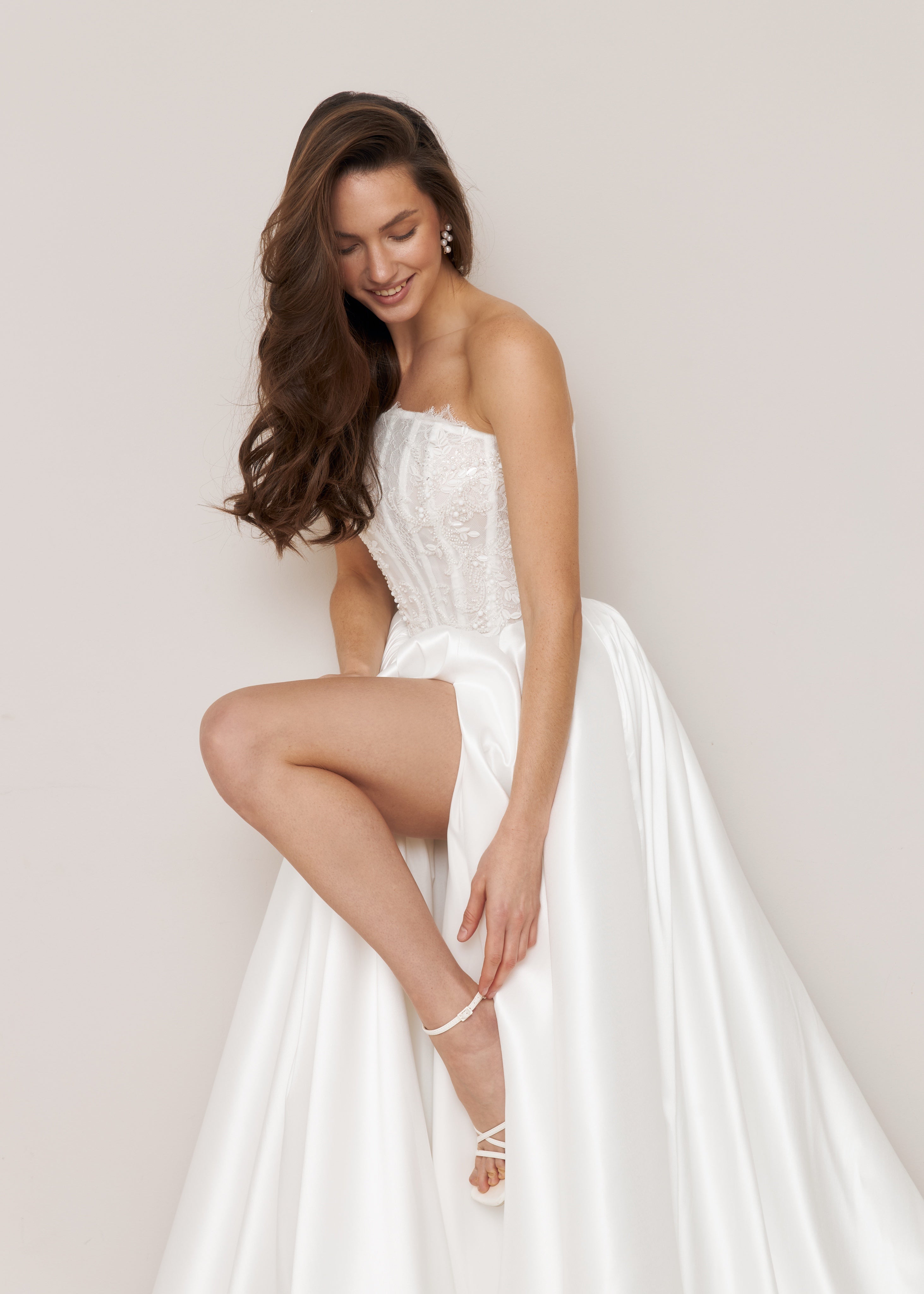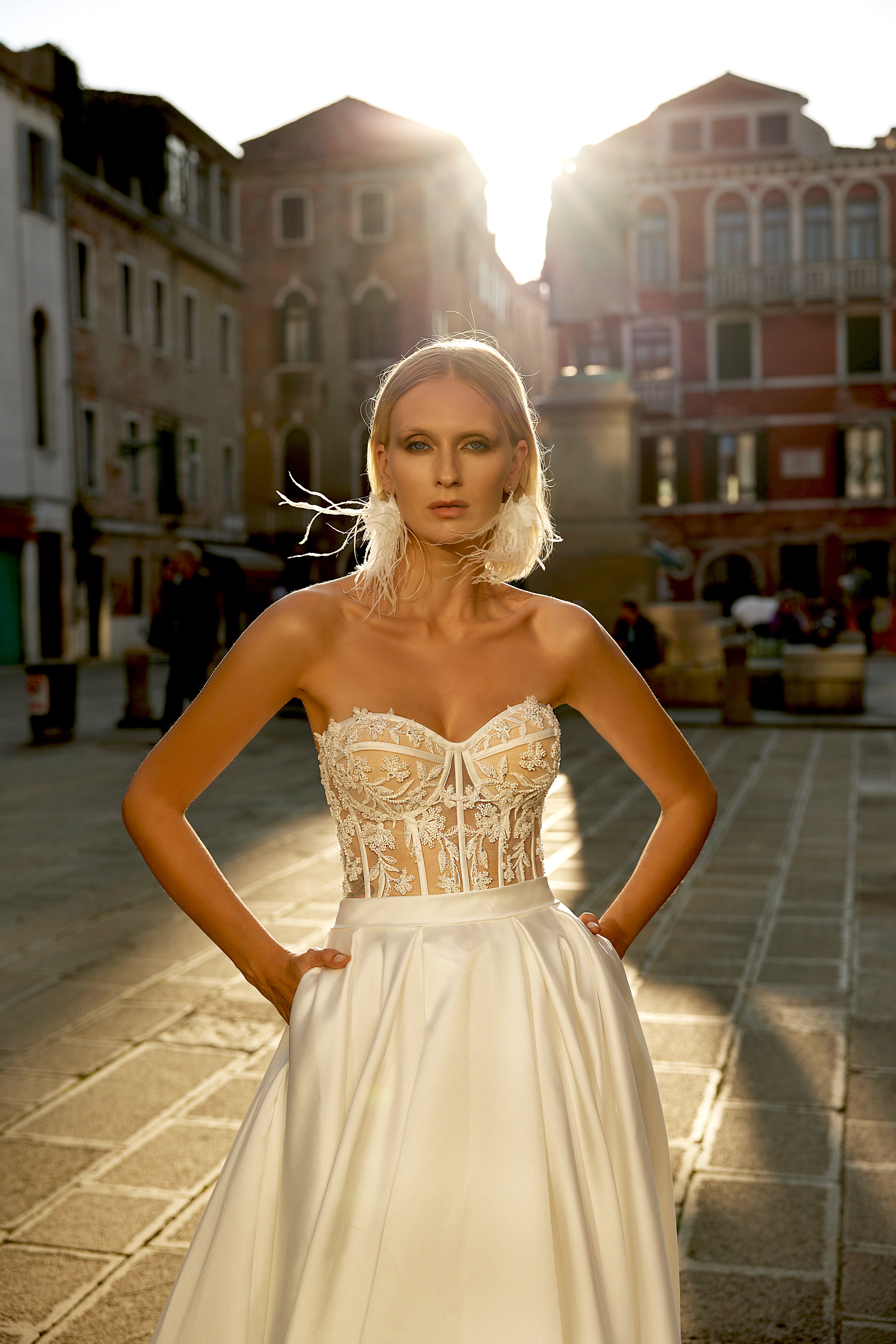 Simple yet sophisticated, the lightweight wedding dress brings unparalleled elegance.