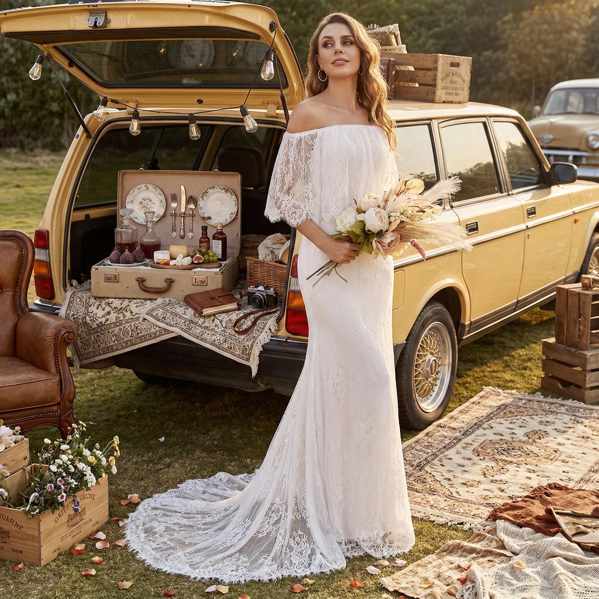 Vintage-inspired elegant wedding gowns blend classic wedding dress elements with modern minimalist style, drawing inspiration from romantic eras of the past, such as the popular styles of the early 20th century. They emphasize detailed design, often featuring lace, embroidery, and exquisite fabrics, exuding a gentle and elegant atmosphere. The gowns typically have an A-line or fitted cut, showcasing the bride's noble气质 (qi zhi - inherent quality/temperament) while maintaining a light and airy feel. Suitable for brides seeking a romantic vintage style, these gowns create a wedding atmosphere that is both historically significant and modernly elegant.